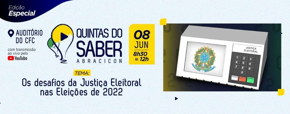O tema será “Os desafios da Justiça Eleitoral nas Eleições de 2022” e a programação está imperdível, contando com presenças ilustres: